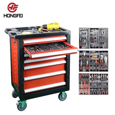 车间工具存储套件工具拉杆柜,带汽车维修工具